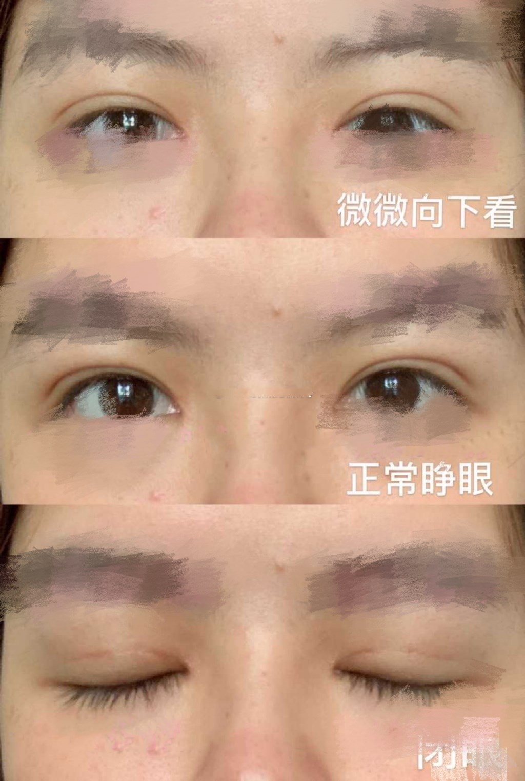 第二天去换药的时候发现眼睛淤血了大概是来姨妈眼压高吧,后面两天冰敷第三天以后热敷,自己早晚拿氯霉素滴眼液和红霉素软膏换药,拆线的时候也不疼,72小时以后我就抹疤克了,期间有忍不住吃辣吃海鲜所以眼头稍微有点增生,两只眼睛有点轻微不对称感觉是右眼消肿会慢一些但是我完全可以接受,现在是第三个月的样子很满意现在的状态~